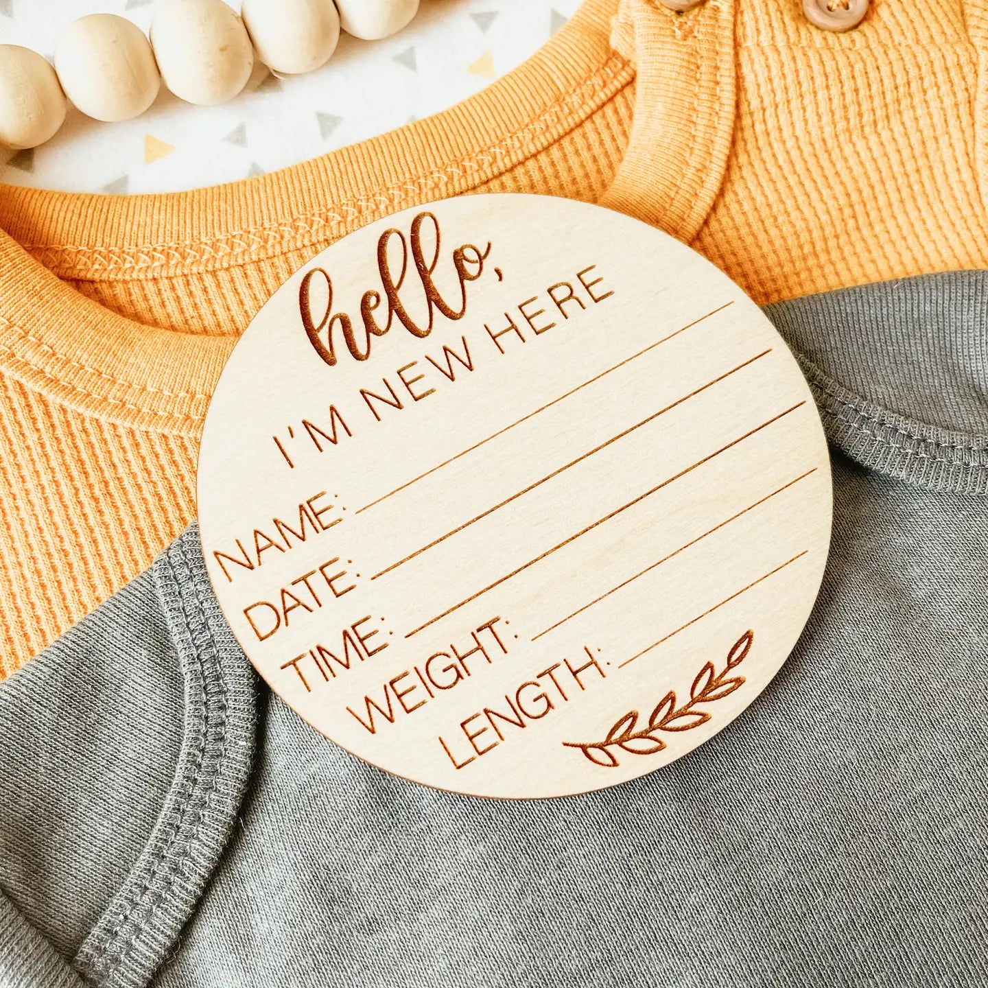 Hello I’m New Here birth announcement signs are a great way to announce a baby’s name and add to newborn photoshoot.