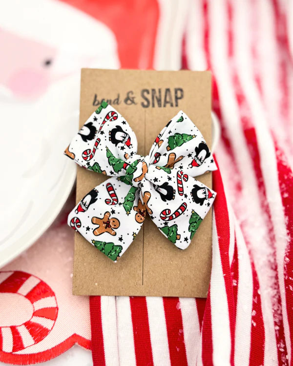 These bows are made of a cotton fabric and are hand tied in Ontario, Canada.
