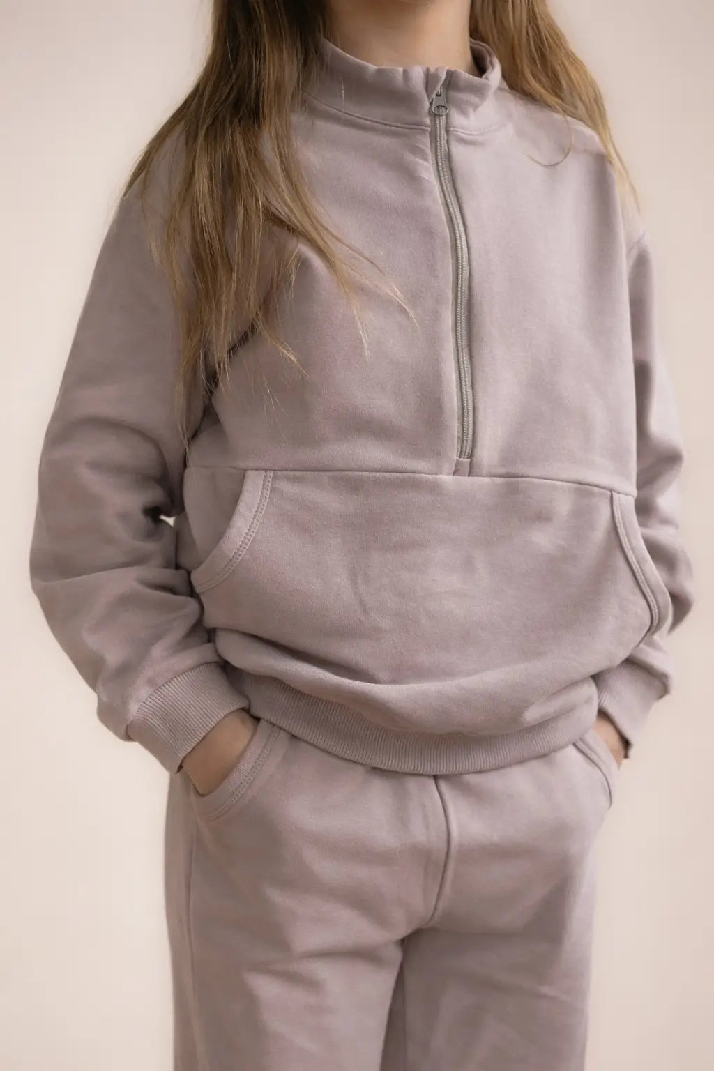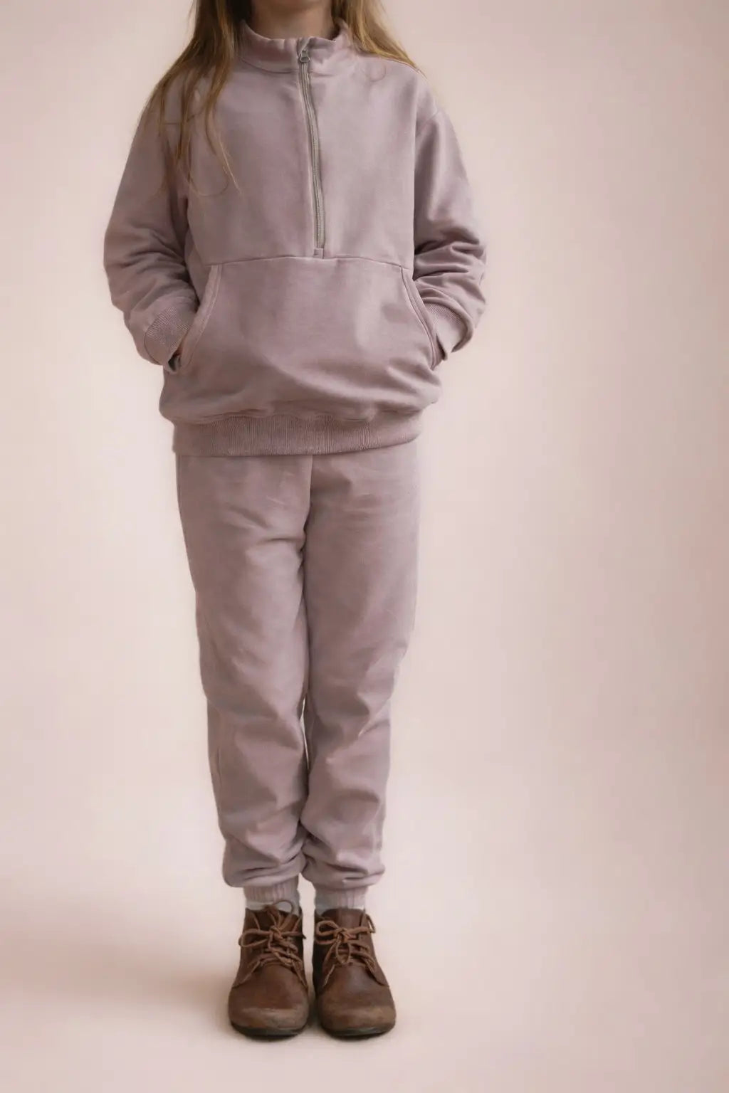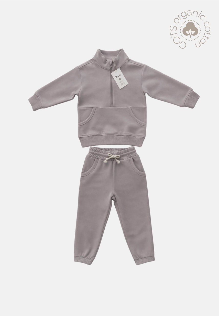 Organic Jogger Set is designed with both style and sustainability in mind. Crafted from high-quality, certified organic materials, this tracksuit provides little ones with the utmost comfort! This eco-friendly fabric not only feels incredibly soft against the skin but also ensures breathability and durability, making it perfect for active kids. The tracksuit consists of two essential pieces: a cozy half-zip pullover and a matching pair of joggers. The hoodie features a relaxed fit, ensuring freedom of movement during active play. The joggers are designed with an elastic waistband and adjustable drawstrings, ensuring a comfortable and secure fit for children of all sizes. With elasticized cuffs at the ankles, the joggers stay in place during energetic activities, allowing your child to move freely and with confidence. About • Soft GOTS organic cotton, OEKO-TEX® certified • Fabric: Organic Cotton (95%), Spandex (5%) • Available in: 3-6 months - 9 years Fit This item fits true to size. Care Instructions • Wash garment inside out • Gentle machine wash • Hang to dry recommended (or can be tumble dried low heat)