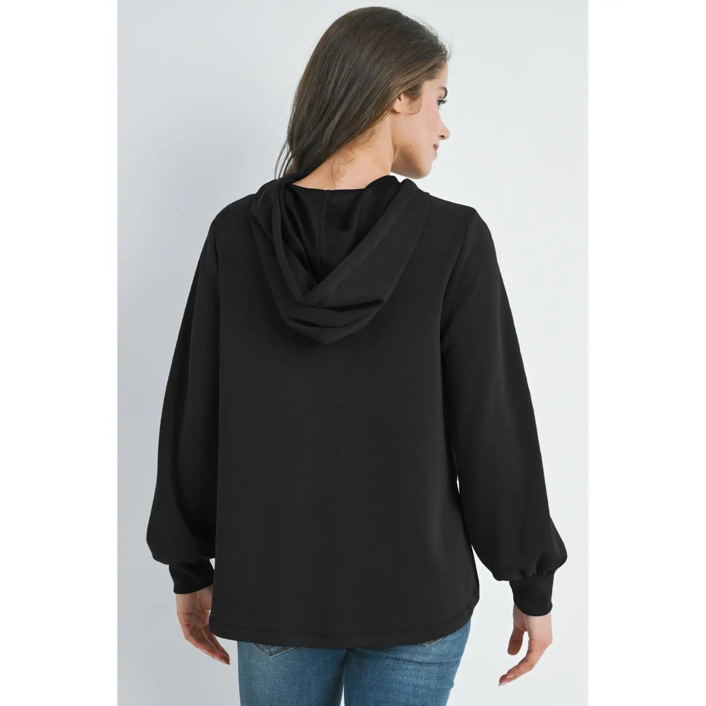 Stay cozy and comfortable throughout your pregnancy with our Relaxed Fit Maternity Stretch Knit Pullover Hoodie. Made from an ultra-soft, stretchy blend of modal, polyester, and spandex, this hoodie is designed to adapt to your growing bump without sacrificing style. The relaxed fit and side slits offer extra room for movement and easy nursing access, while providing a flattering silhouette. Perfect for lounging at home or casual outings, this hoodie is a maternity and postpartum must-have that combines comfort, functionality, and laid-back style.
